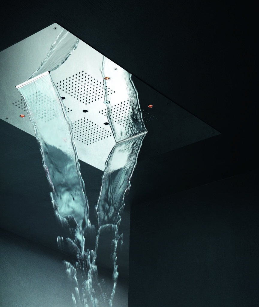 L’acqua diventa così una materia architettonica, capace di influenzare la percezione dello spazio e di trasformare il bagno in un ambiente dedicato al benessere sensoriale.