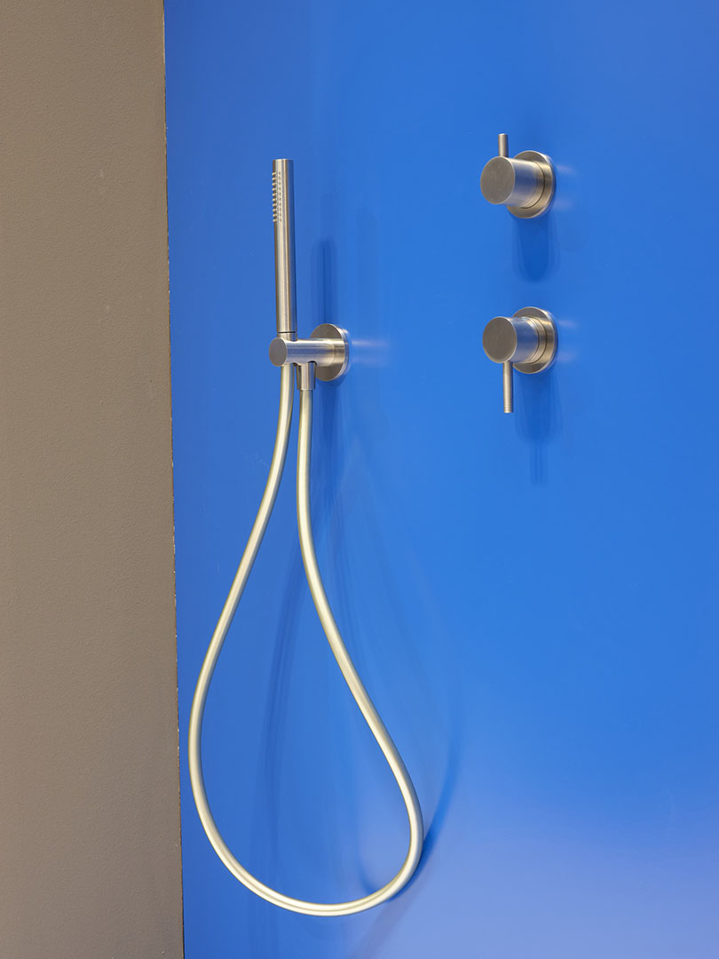 Set doccia con presa acqua e supporto per doccetta quadrata ottone, by Aquaelite